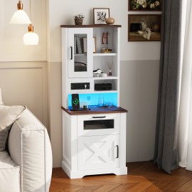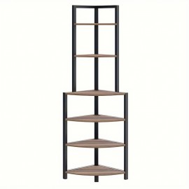 Corner Cabinet, 9-Cubby Corner Bookshelf Bookcase, Corner Cabinet Storage with Charging Station