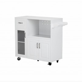Kitchen Island With Single Door Cabinet And 3 Open Storage Shelves, Rolling Utility Kitchen Cart With Drawer, Cabinet, Towel Rack, Hooks, Mobile Storage Cart For Dining Room, Bar, White