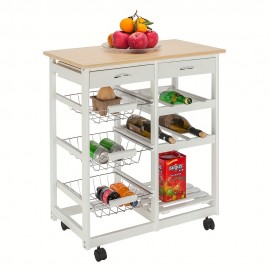 Nature's Lodge Mobile Kitchen Island On Wheels, Storage Kitchen Cart Trolley Cart With Extendable Shelf And Towel Rack, White/Red
