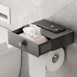 Toilet Paper Holder Stand with Shelf, Free Standing Toilet Tissue Roll Storage Rack for Bathroom, Black